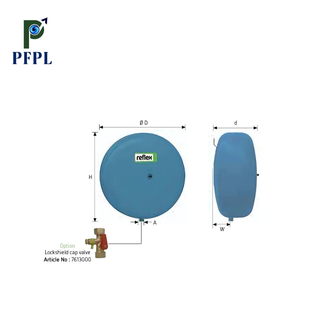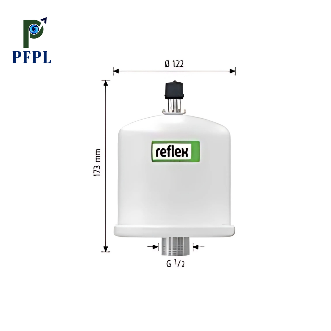 Refix Water Shock Arrestor application involves sudden pressure spikes caused by rapid shut-off devices such as washing machines and dishwashers, this vessel meets or exceeds the requirements of the EC Pressure Equipment Directive 2014/68/EU. With a capacity of 1 litre, it features a durable epoxy resin coating and a factory pre-pressurised nitrogen gas chamber at 4 bar. The vessel is rated for a maximum pressure of 10 bar and an operating temperature up to 70°C.